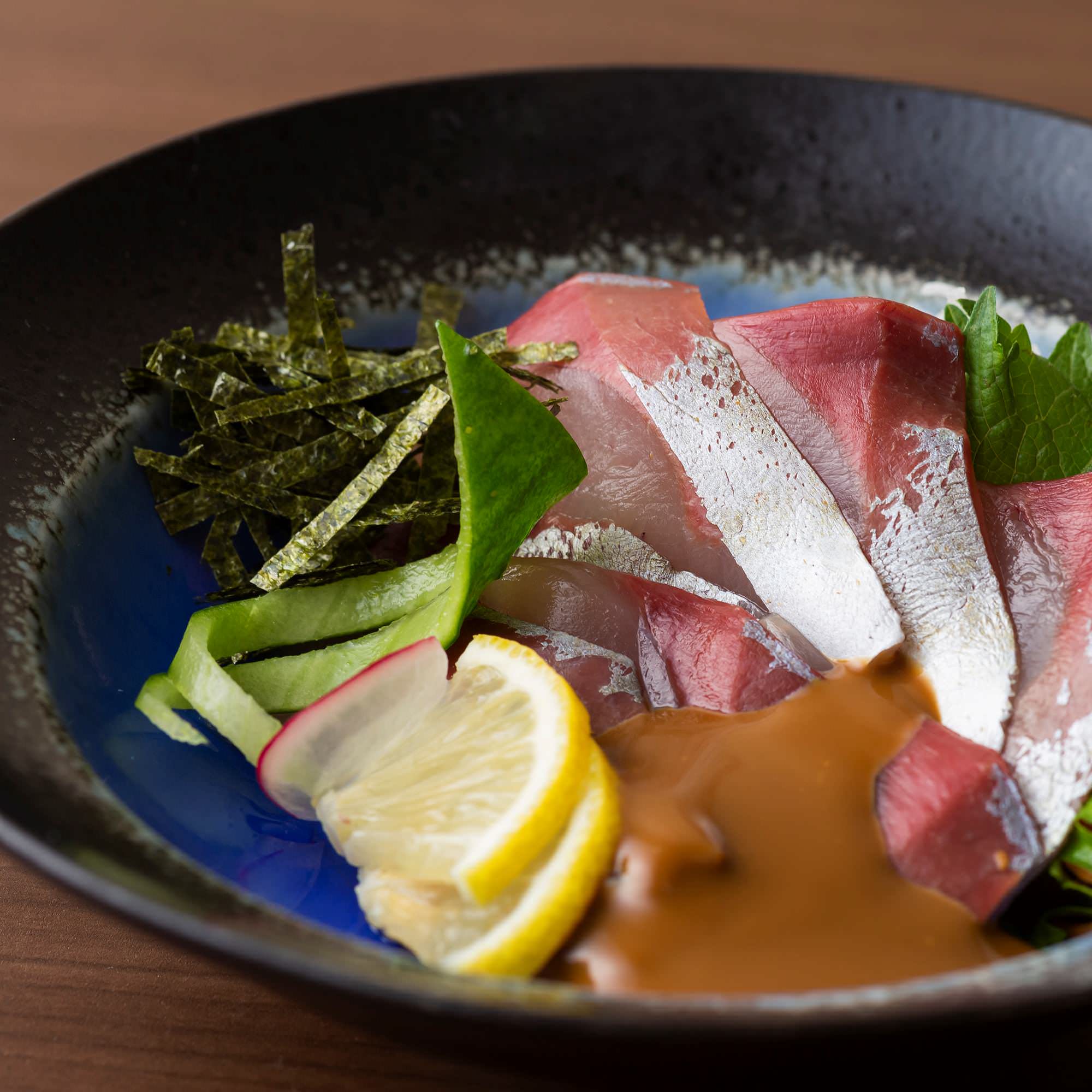 新鮮な刺身を特製のタレとたっぷりのゴマであえた福岡の名物料理です!
